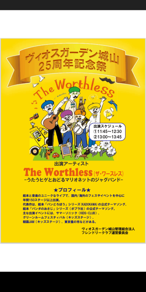 ヴィオスガーデン城山25周年記念祭にジャグバンドがやってくる!