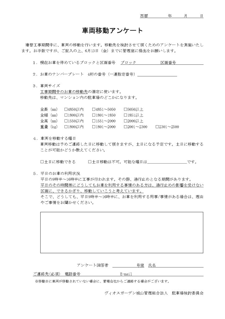 駐車場車両移動アンケート
